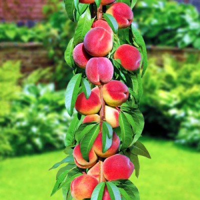 Персики колоновидной формы - это небольшие компактные деревья, которые не превышают в высоту 1,7 метра и в диаметре 0,5 метра. Они покрыты красивыми круглыми плодами яркого оранжевого цвета с бордовым румянцем. Через 2-3 года после посадки саженца вы сможете насладиться обильным урожаем. Эти сорта деревьев относятся к группе карликовых растений. Колоновидные персики имеют невысокие стебли, что отличает их от традиционных плодовых деревьев.